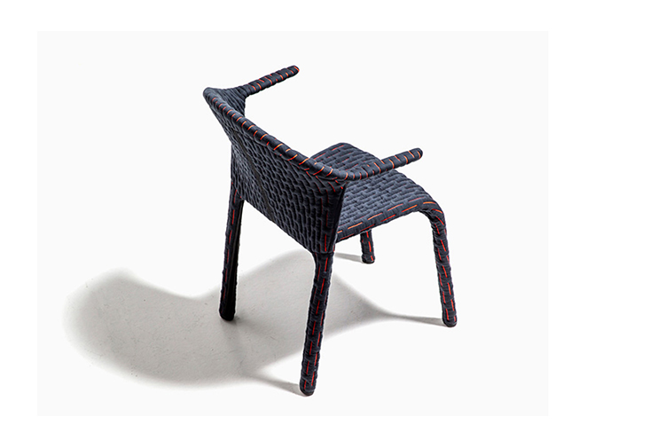 伪装成休闲椅的扶手椅,用他们的外表来控制空间。这主意很简单,用一件有衬垫的大衣盖住金属框架然后把它变成别的东西。一种非常直立的姿势,扶手的形状让人联想到双排扣外套的翻领,而这种相似之处就在中央扣扣上。室内装潢变成了衣服,可以在不过度的情况下,将赤裸的身体转变成一种追求自身内在同一性的物体。