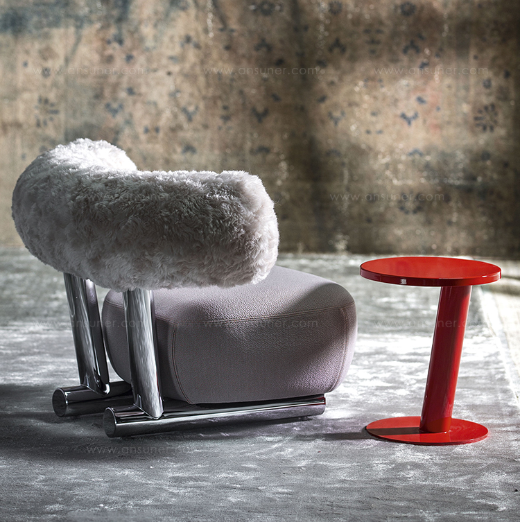 把粗糙放置在精致上面,选择一个与趋势相反的选择,而不是最常见的研究苗条的形式。尽管如此,保持轻盈,空灵。因此,设计是围绕着超大号的最让人放心的方面:简单性。这个极简和坚固的结构是用一个直径80毫米的粉彩铝管建造的。其上有一个带有圆形体形的座垫,这是一个关于充气模块的构思的隐蔽暗示。背面,就像一个大胆的圆括号,承诺给人安慰。它的效果,以及自然的吸引力,都是令人愉悦的圆润,随意而轻的。