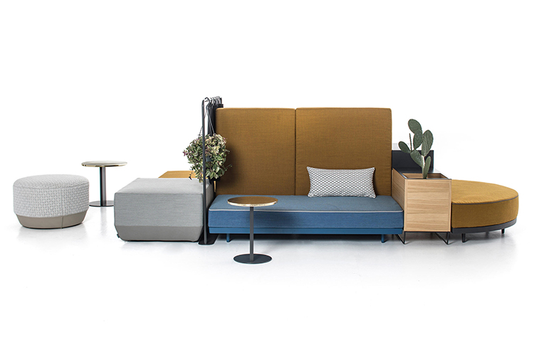 设计相互作用,轨迹控制空间。比基尼是一种风景,它是时代的产物,是它所代表的社会。无论是在等候区还是在家中使用,座位系统是绝对灵活的,因为不需要空间的布局和座位组件的排列。这些组件在外观和功能上各不相同,因此,它们可以在任何设置中使用。凳子、桌子、衣架、容器、架子、屏风、工作台、座椅:每一个元素都结合在一起,创造互动和交流。多种功能和含义的结合意味着沙发作为看电视的家具或简单的休息场所的概念发生了革命性的变化,使它成为互动的核心。