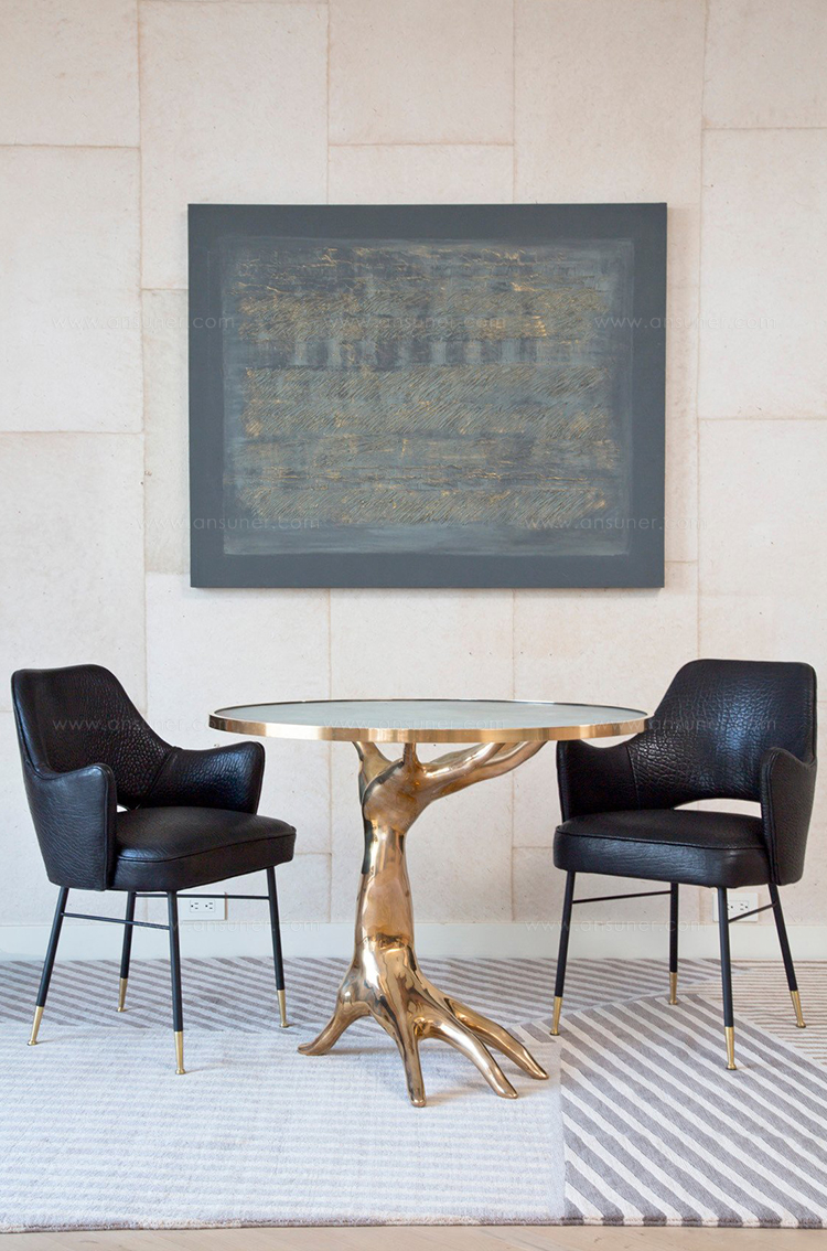 豪华雕塑的Dichotomy桌是一款令人惊叹的独特陈列桌,灵感来自古典的比喻装饰。 底座采用青铜铸造,手工精心打磨。 钢化玻璃顶部采用匹配的青铜饰边。 直径36英寸,这张桌子是一个完美的入口,或强调一个正式的座位群。 Dichotomy桌有青铜或油擦青铜饰面。