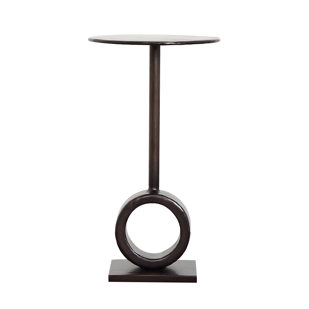 这款小巧的鸡尾酒桌巧妙地采用实心青铜铸造而成,具有斑驳的手工凿成的表面纹理。 圆柱形底座和精致的杆为这件作品赋予了雕塑般的品质。