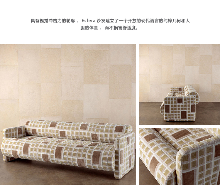 具有视觉冲击力的轮廓,Esfera沙发建立了一个开放的现代语言的纯粹几何和大胆的体量,而不损害舒适度。这款沙发的全身都是软垫,有一系列的面料和皮革可供选择。