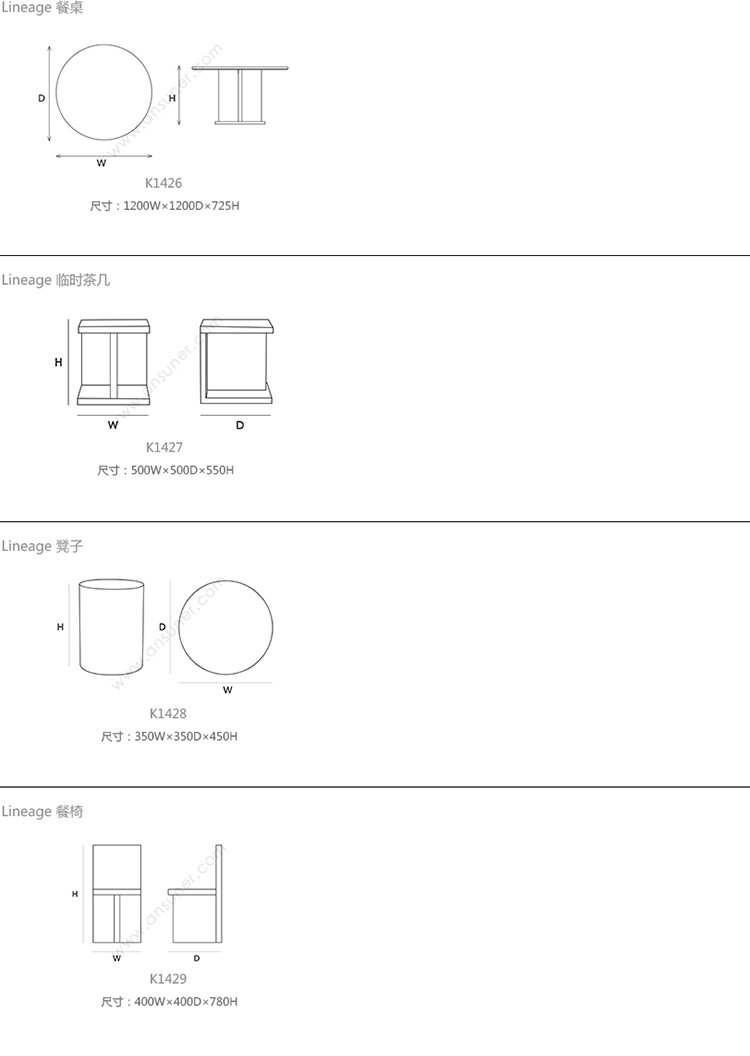 Lineage 餐桌 系列尺寸/示意图