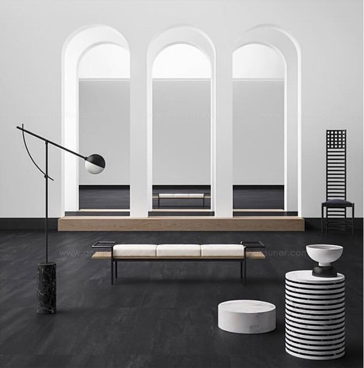 Lineage凳子融合了混合大理石和建筑构造形式,体现了艺术与功能的现代二元性。 这款雕塑般的整体式凳子采用交替层叠的天然黑色玛奎那和白色大理石,经过磨光处理。