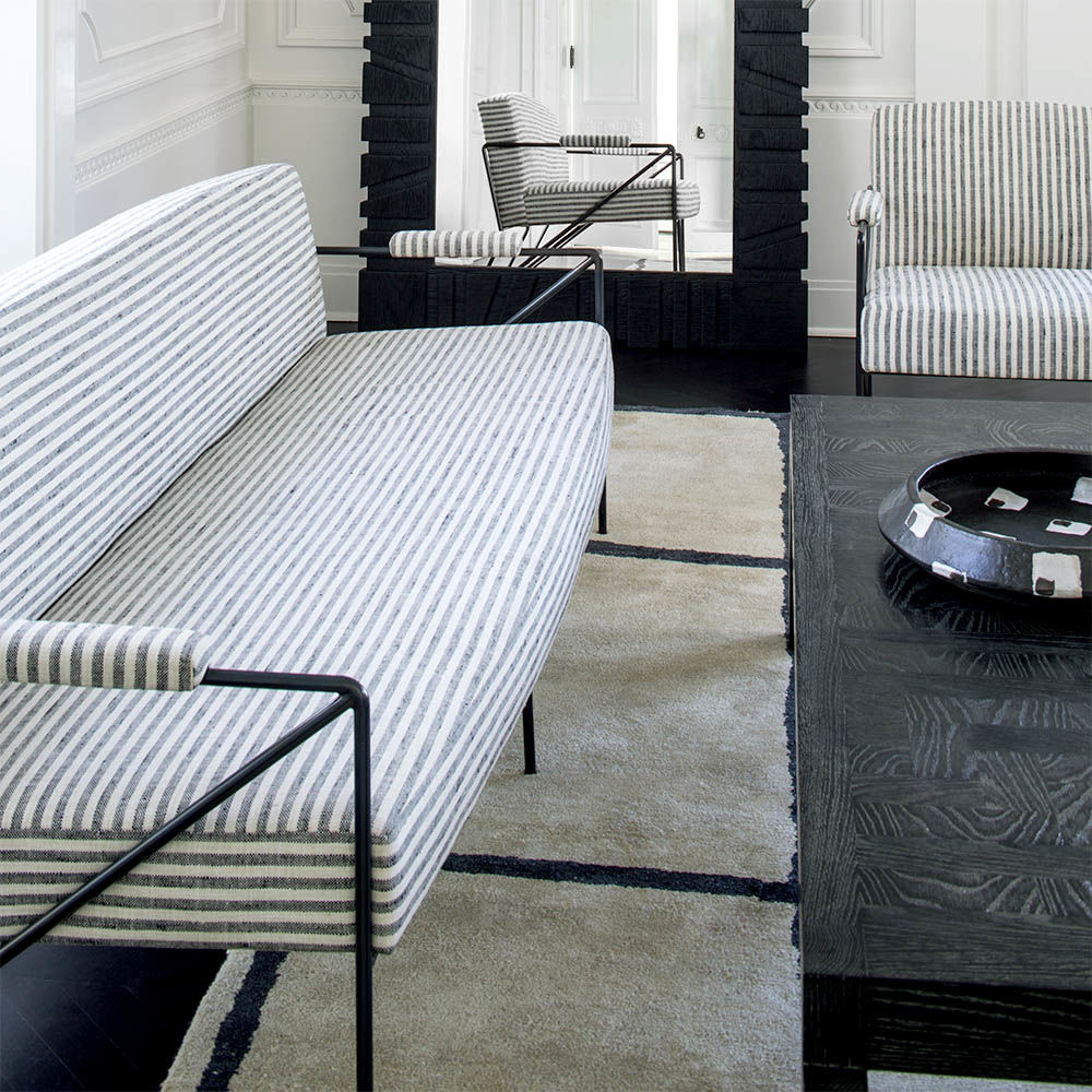 休闲而优雅的Emmett Settee在发夹后腿上设有一个亚光黑色不锈钢线性框架。 座椅和靠背提供轻松的直立座椅位置,使其成为完美的偶尔或此商品在我们的洛杉矶工作室手工制作。图书馆沙发选择。 腿具有多边形滑动以保护地板。
