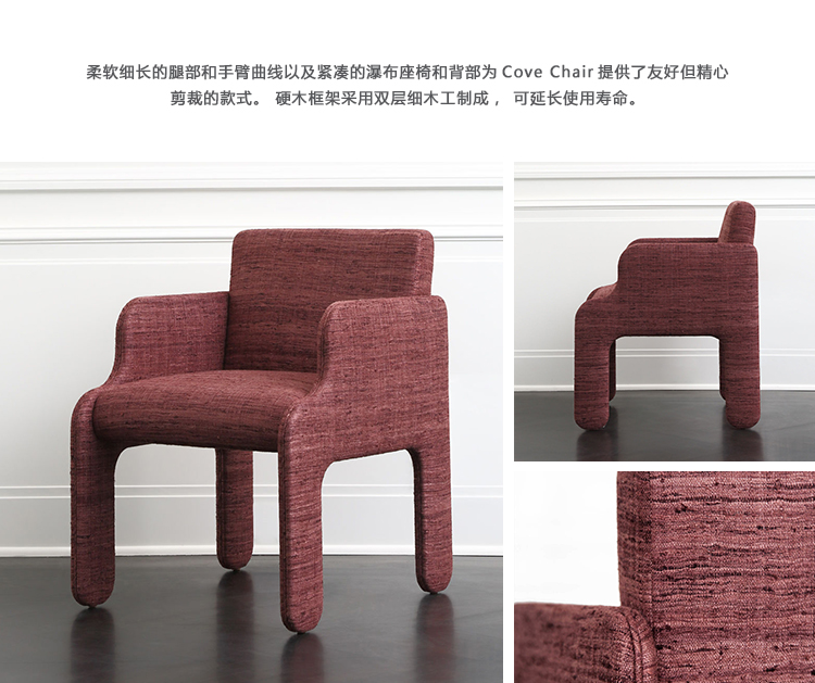 柔软细长的腿部和手臂曲线以及紧凑的瀑布座椅和背部为Cove Chair提供了友好但精心剪裁的款式。 硬木框架采用双层细木工制成,可延长使用寿命。 这把椅子专为休闲餐饮或办公桌使用而设计。 这款全软垫椅子具有现代气息和时尚造型,有各种精选面料和皮革可供选择。