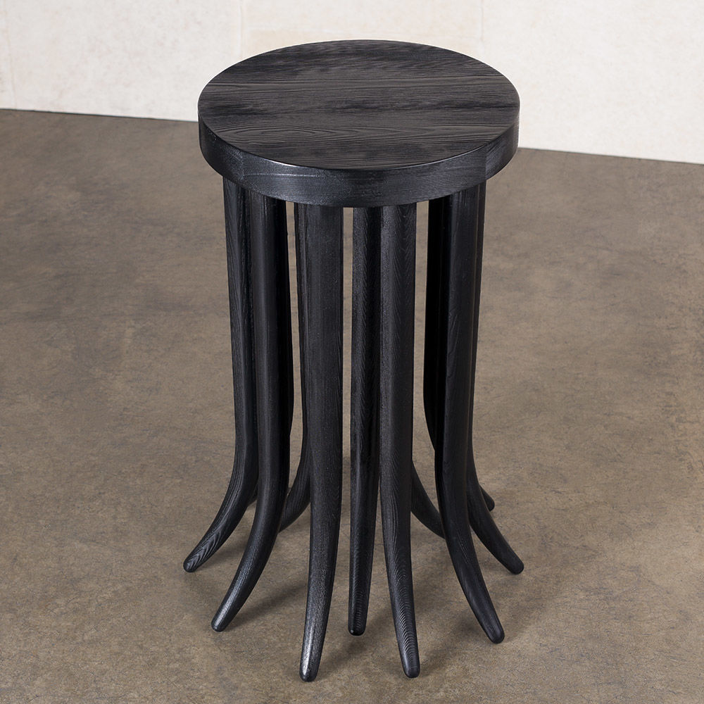 Drexel边几有机和雕塑,突出了艺术与功能之间的俏皮二分法。这个小巧的侧边桌以道格拉斯冷杉为特色,采用碳化处理,喷砂以增强木材的动态纹理图案。