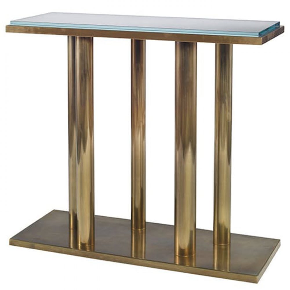 标志性的Holmby玄关台采用我们标志性的抛光黄铜饰面,打造出大胆而经典的选择,是任何家居的理想选择。 各种不对称的黄铜柱提升了黄铜古董镜面。