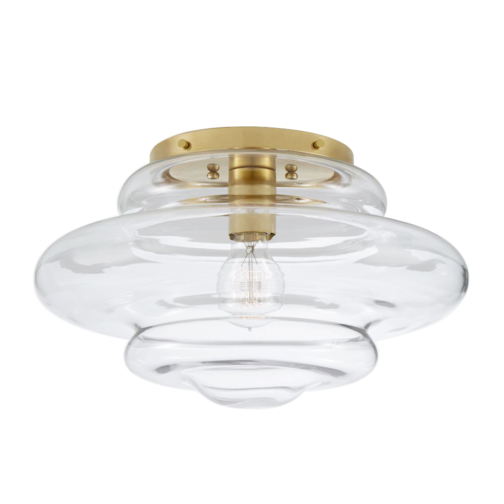 Tableau Medium Flush Mount(Tableau中型吸顶灯)是一款具有动态吹制玻璃罩的现代经典款。 这款嵌入式安装座采用古董抛光黄铜,青铜或抛光镍制成,带有透明或纹理喷砂玻璃,适用于潮湿环境。