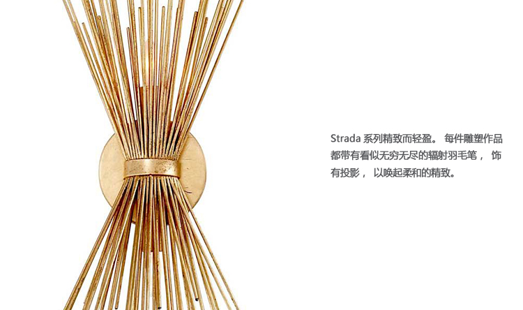 Strada系列精致而轻盈。 每件雕塑作品都带有看似无穷无尽的辐射羽毛笔,饰有投影,以唤起柔和的精致。