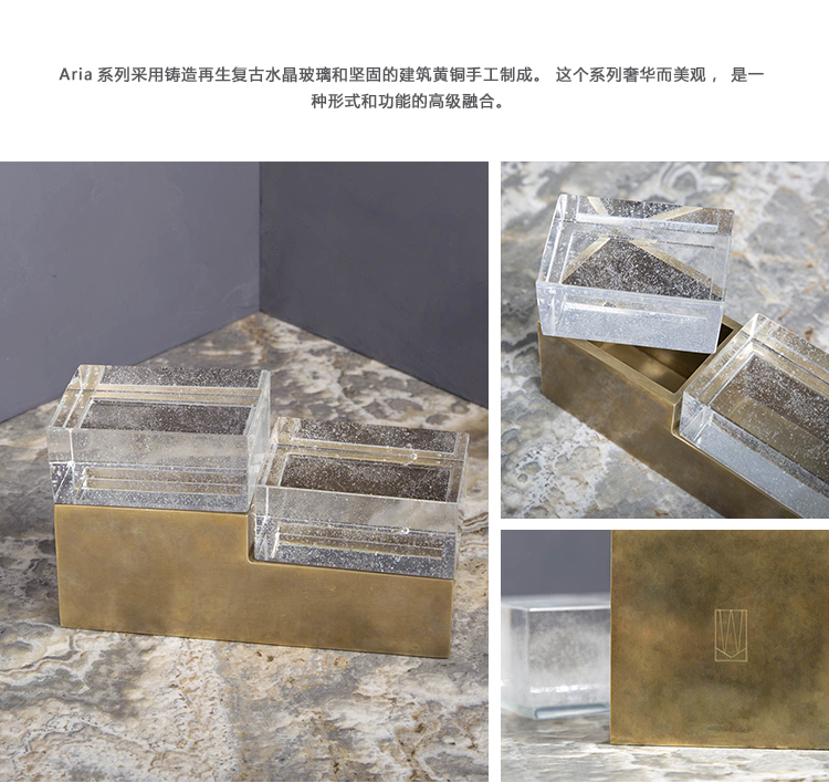 Aria系列采用铸造再生复古水晶玻璃和坚固的建筑黄铜手工制成。 这个系列奢华而美观,是一种形式和功能的高级融合。