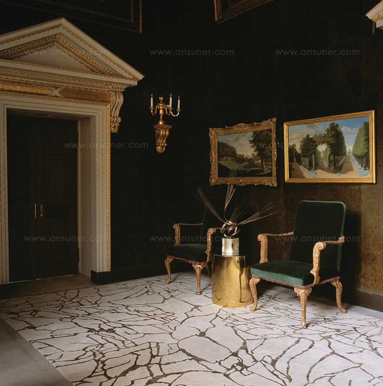 从石头和大理石的天然纹理中汲取灵感,当光线照射到丝线上时,Tracery地毯有机线条的变化和闪烁。 背景是西藏羊毛,呈暖灰色,图案为柔软的橄榄绿色丝绸。