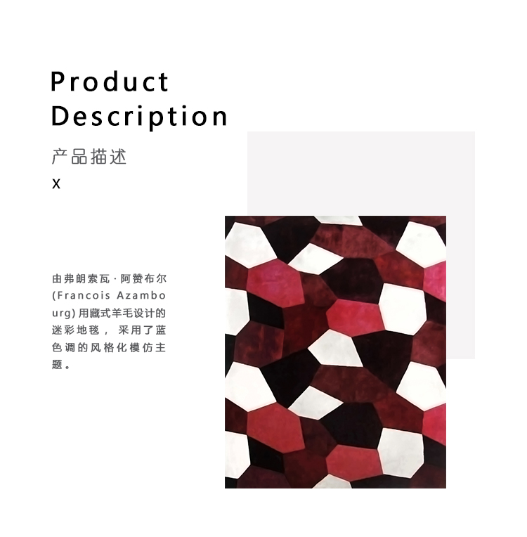 由弗朗索瓦·阿赞布尔(Francois Azambourg)用藏式羊毛设计的迷彩地毯,采用了蓝色调的风格化模仿主题。