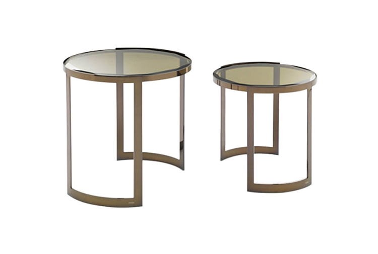 Anya是用橄榄绿或茶色玻璃制成的新顶部的茶几,与黄铜的结构形成对比。一种最小的装饰元素,使顶部的磨削能带来无可挑剔的工艺。