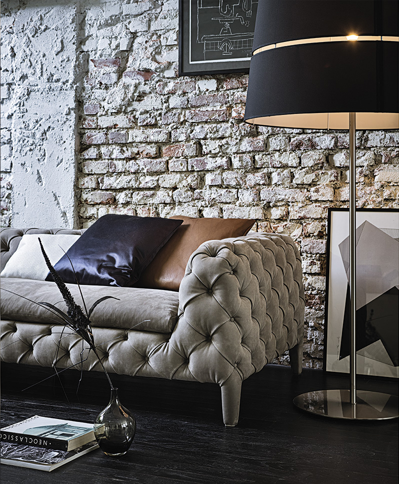 Windsor与各种各样的家具相适应:在传统的环境中,它是完美的,在现代的背景下,它就像一件有价值的艺术品。这款沙发专门由capitonne装潢设计,有着明显独特的感觉。这是精致而复杂的,但也很柔软,很受欢迎,因为这颗独特的纽扣被埋在了衬垫的钻石缝里。Windsor已经扩大了它的范围,还有314厘米的超大沙发。此外,天鹅绒的新版本给沙发带来了柔滑和奢华的外观。