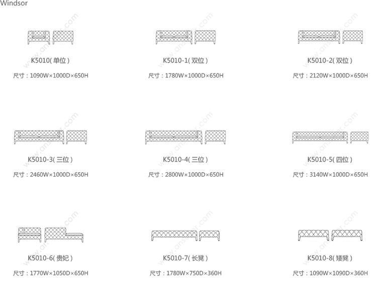 Windsor sofa 系列尺寸/示意图