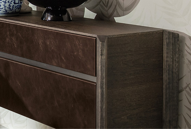 完成最低生活的家具, 但也为一个更经典的住宿, 是由 Manzoni 和 Tapinassi 的荣耀餐具柜, 在莫卡, 卡纳莱托核桃或 Sucupira, 用金属零件涂在云母颜色或镀锌钛, 与印记很纯洁门和抽屉可以用植物皮革覆盖。