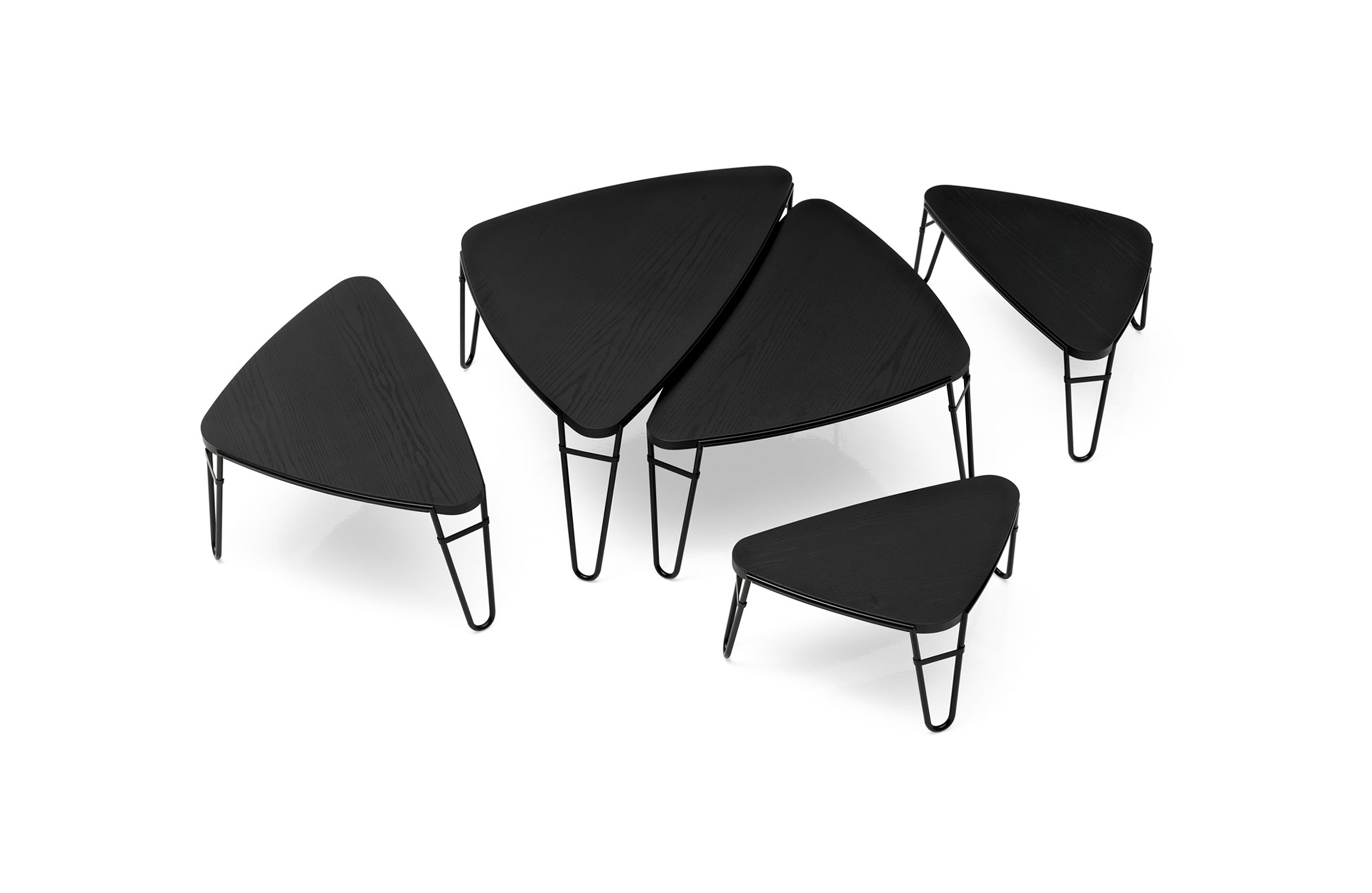 采用哑光黑色的珍贵木材或黑色实木橡木或美国黑胡桃木制造的矮桌。桌面厚度和凹面刻画了正式用语中的模型特征,并创造了令人讶异的轻盈感。该款矮桌是于1969年为日本驻巴黎大使馆设计的,这款咖啡桌是技术和中继合成的胜利。