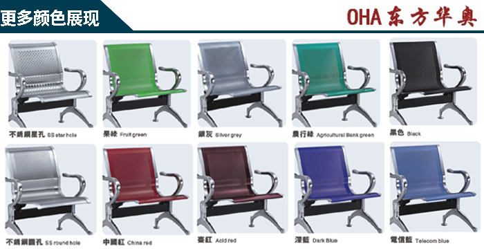 2、扶手、脚:采用优质钢管材经模具焊接成型,抛光,再在表面进行酸洗,除锈,磷化多重工序后进行环氧静电喷粉处理,防锈功能强大。
