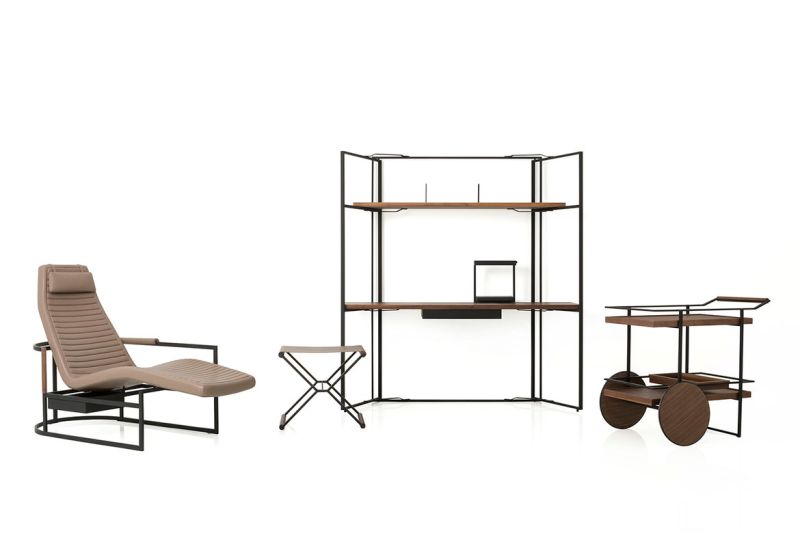 这三件作品都是为了将负空间变成一种审美特征,利用浮动的平面和线框来营造一种光鲜、简洁的氛围。选材上受全球汽车工业风影响,选取了具有温润触感的黑色金属、胡桃木和深色调哑光皮革,细节处渲染出精致本色。