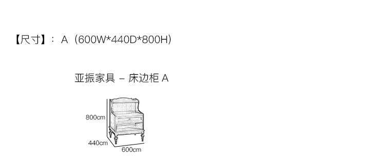 亚振家具 - 床边柜 产品尺寸/示意图