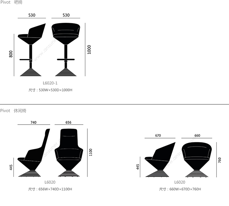 Pivot 吧椅 系列尺寸/示意图