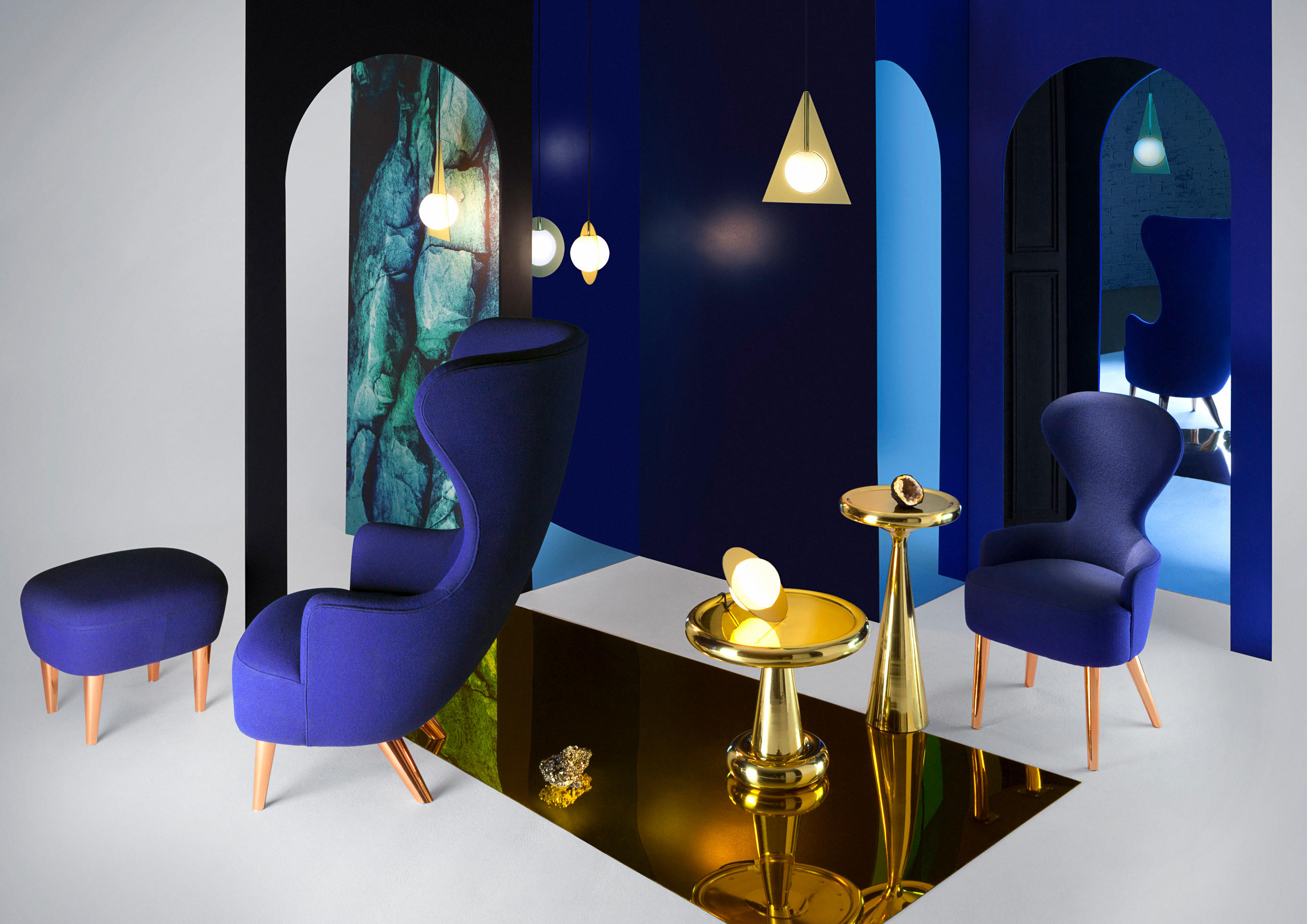 由Tom Dixon Space age, Art Deco or Pop设计的2013 Spun-sheet solid brass bronze——这三件极具表现力、偶尔会出现的家具,每个人都看到了不同的影响。她说:“这是一件非常漂亮的作品。它的比例非常大,用手工抛光的纯黄铜薄板做成的曲线状,使鸡尾酒吧、餐厅或客厅立刻焕发出迪斯科的魅力。”
