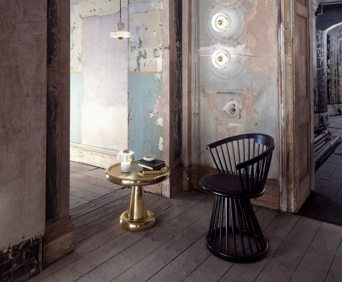 由Tom Dixon Space age, Art Deco or Pop设计的2013 Spun-sheet solid brass bronze——这三件极具表现力、偶尔会出现的家具,每个人都看到了不同的影响。她说:“这是一件非常漂亮的作品。它的比例非常大,用手工抛光的纯黄铜薄板做成的曲线状,使鸡尾酒吧、餐厅或客厅立刻焕发出迪斯科的魅力。”