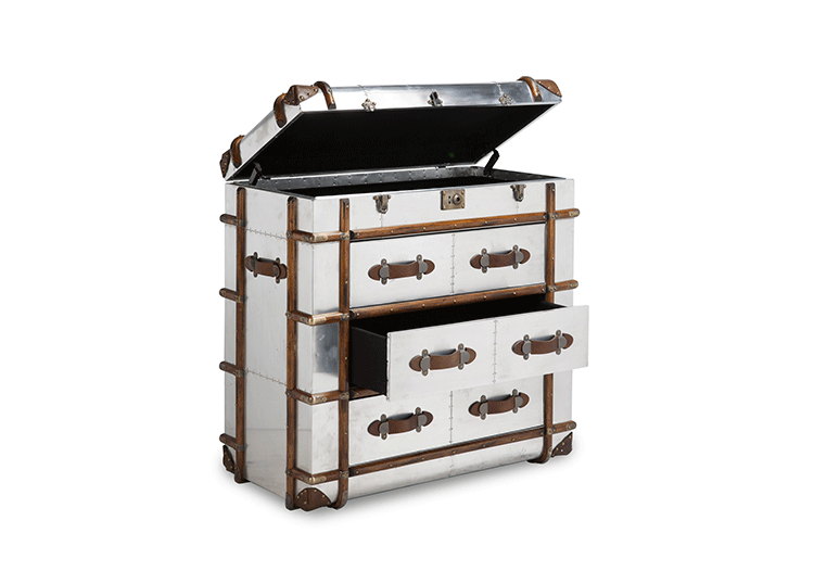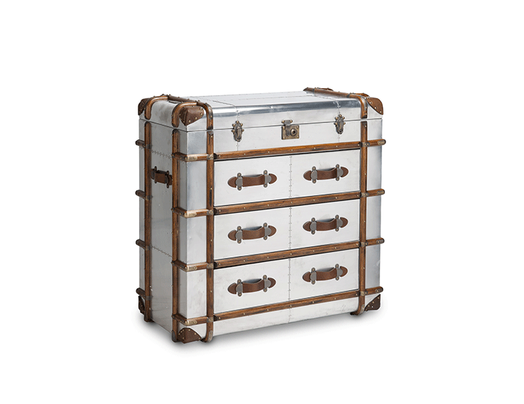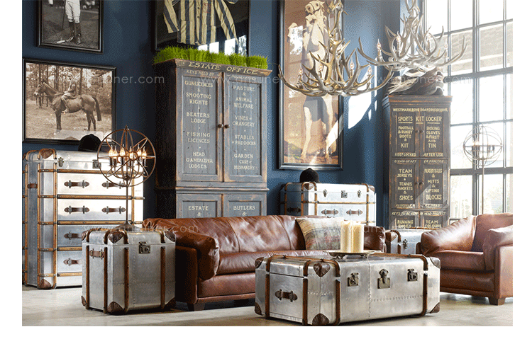 "慵懒、我行我素、精致、时尚,还有那么点怀旧的味道,Timothy Oulton家居的产品就是用这些无可替代的特点,征服了各国的英伦家具爱好者们。重提浪漫时代的长长的豪华海上航行,Globetrekker 系列的灵感来自Timothy Oulton于1914年在一个古董市场发现旅行箱,他深深的被复杂细节和美丽的黄铜板的旅行箱迷住了,Oulton拆解了那个古色古香的旅行箱并进行重新设计出一系列作品,它涵盖的灯表、 箱子、 咖啡桌和书柜等集合。捕获真正的魅力,还原精致工艺的旧古董皮箱的精髓,通过怀旧的贴纸饰面样式,采用老木、优质的老式皮革和黄铜铰链,通过精湛的手工处理完成了这套系列。
