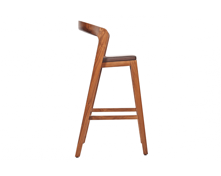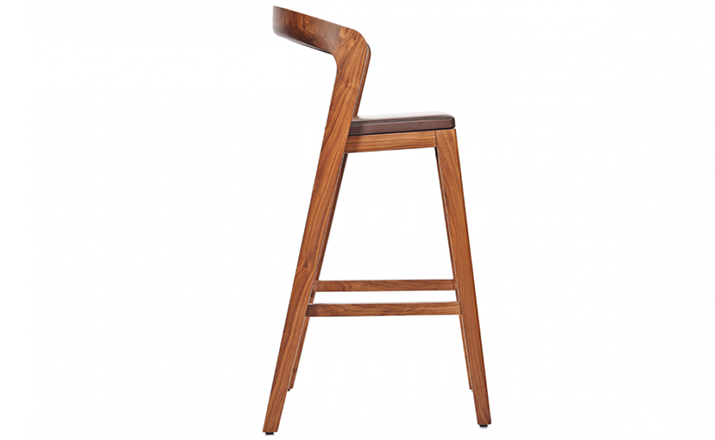 Sustainable,comfortable bar stool.Thanks to its sexy and elegant design this barstool can decorate each kitchen table.The rounded backside operates perfectly as arm rest.The feetrest comes with stainless steel cover.