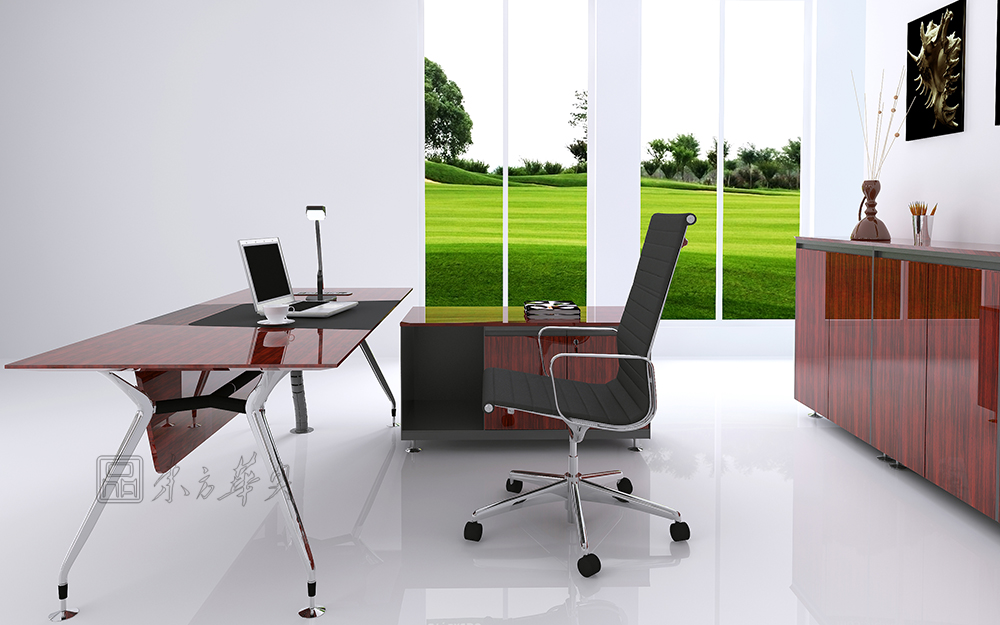 ※ 下图为配套大班台展示,台面颜色可选,木析纹理和质感表现得更为淋漓尽致,色泽自然,台脚可选择,不锈钢脚或钢脚架喷涂,款式简洁大方,时尚美观。