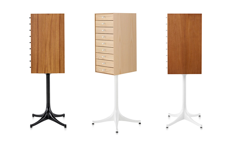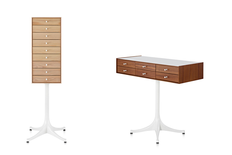 乔治·尼尔森(George Nelson)是美国极具影响力的建筑师、家具设计师和产品设计师,日本对George Nelson有着深远的影响。在他于1951年第一次到东京旅行,以及之后在那里的十几年,George Nelson迷上了日本的所有东西。这种影响最明显的的他于1952年设计的迷你箱。迷你箱的神奇处是可用来存放各种物品,是一个很多小抽屉小储物柜,方便您分类摆放各种生活物品。尼尔森设计的迷你箱最让人惊奇的是它几乎可以摆放在任何房间,无论是卧室,办公室,客厅等等任何您需要的地方,美观且不失和谐。每个抽屉都是木工们细心的安装设计,以保证高品质。抽屉采用胡桃或樱桃木皮贴面,基材为环保高密度板环保油漆喷涂、铸铝烤漆可调节脚架(4星级铝底座)、或玻璃钢一体成型脚架,抽屉贴心的配置有金属旋钮,方便打开与关上。