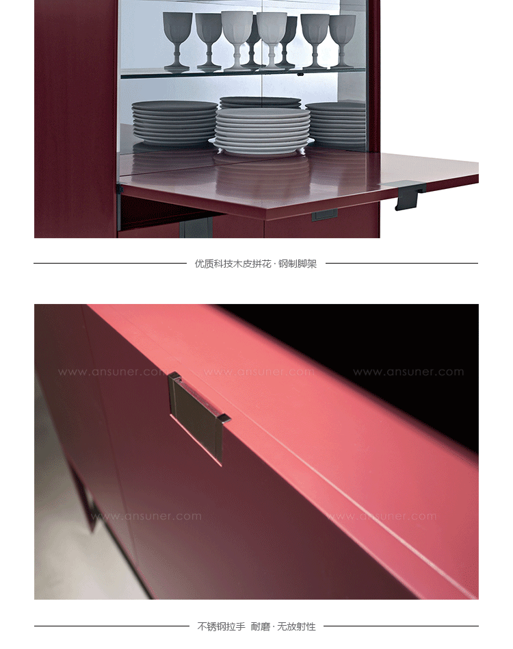 无论是在生活区域,入口处或办公室,这些箱子将优雅地解决任何存储需求。 可提供双扇门,皮瓣或在一个开放的版本。 他们简单,目前的设计配上宝贵的红色和黑色法国波兰,让人想起东,揭示大专业知识和技艺。