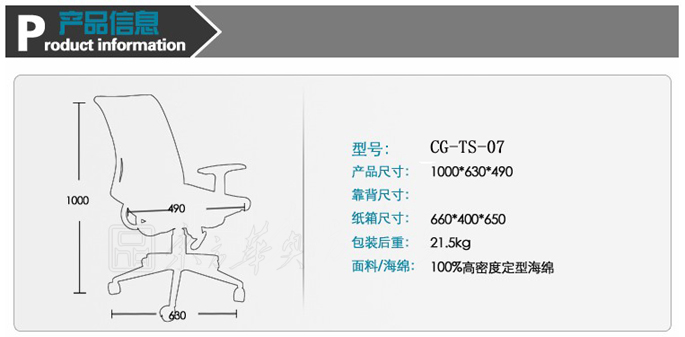 ※温馨提示: 网布职员椅 CG-TS-07的图片颜色已尽量接近实物,但因为拍摄时的光线、显示器的分辨率不同等因素,网布职员椅 CG-TS-07会存在一定的色差,请您谅解。