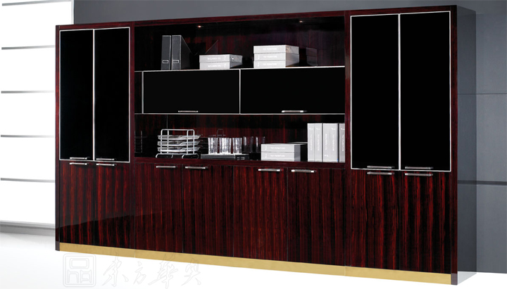 ※  系列配套文件柜,顶级黑檀木,304拉丝不锈钢皮革拉手,阻尼门铰,薄至5MM的铝边框,黑色烤玻璃,并配以金色脚线,让奢华成为经典!