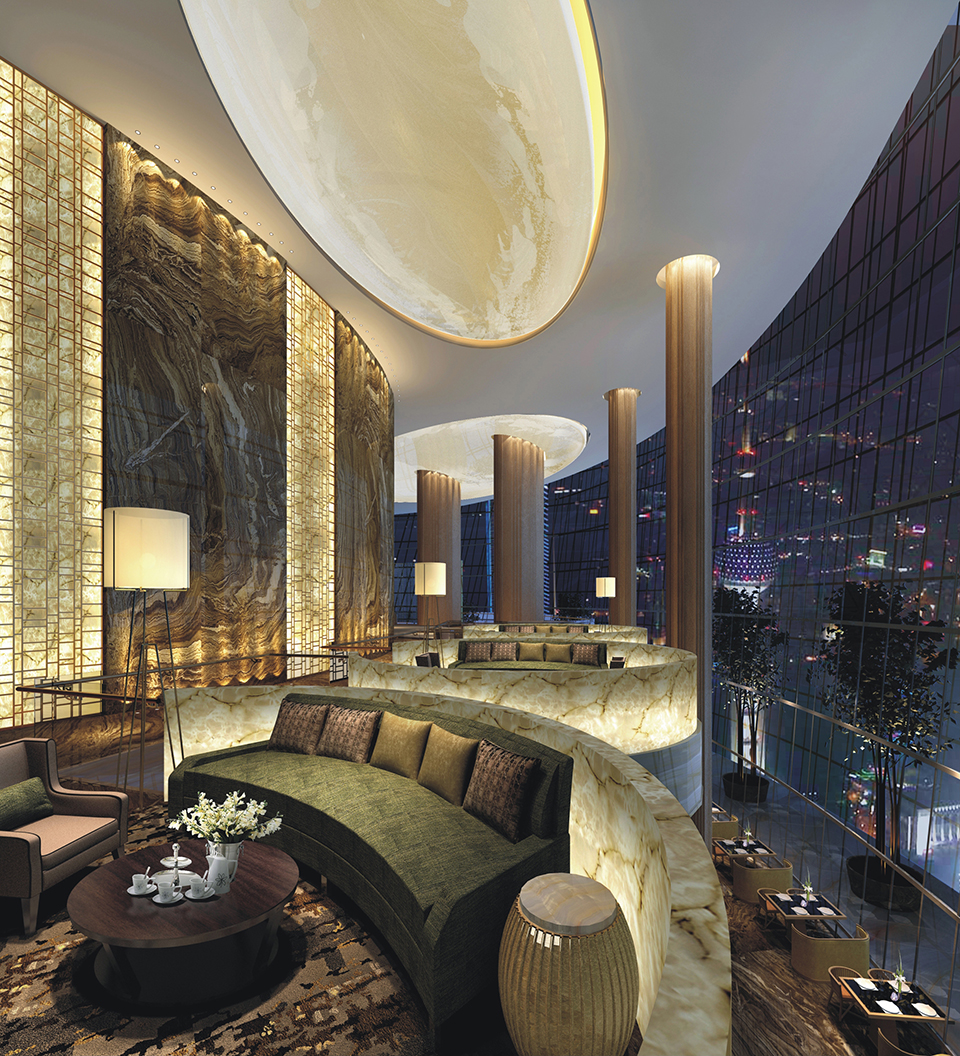 在大堂和宴会厅等主要公共空间放置大型主题公共雕塑,与气势磅礴的智能艺术装置、壁画共同构成J酒店文化主题观。 公共艺术的互动特质成为客人值得记忆的酒店名片,壮观的城市意境与主题艺术交相辉映,令人流连。