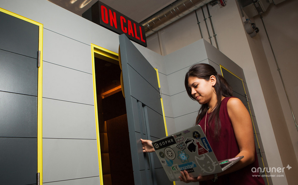 ▼电话间,一系列个人使用的小型私密空间,采用软木和织物等吸音材质,提供一个舒适私密的电话交流空间。