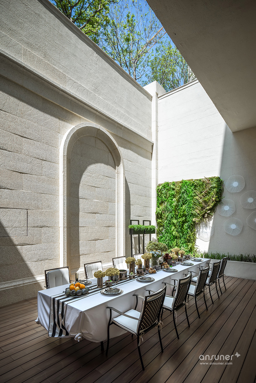 “在我看来,文化的自信与东方设计的回归,不应该仅仅停留在符号、图案、款式、线条的表面异变......甚至,在艺术与审美上,东方和西方并非泾渭分明的。”她说:设计以玉石之王翡翠的色彩,应用于灰色的主调空间,以丰富的家居配饰元素、鲜明的色彩层次及质感的材料运用,呈现了浪漫、灵动的空间之美,让这个五层的别墅呈现了绝美风华。