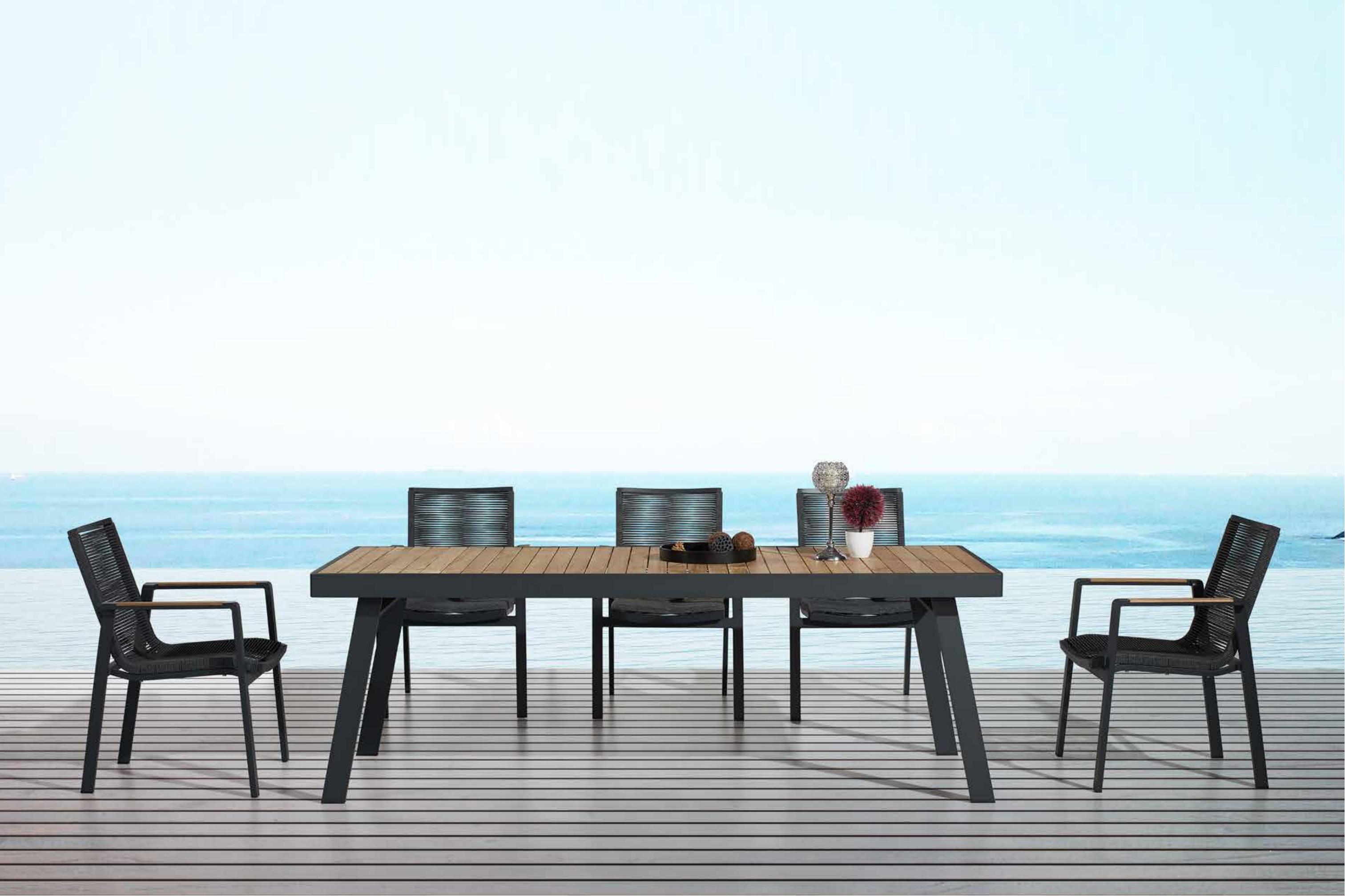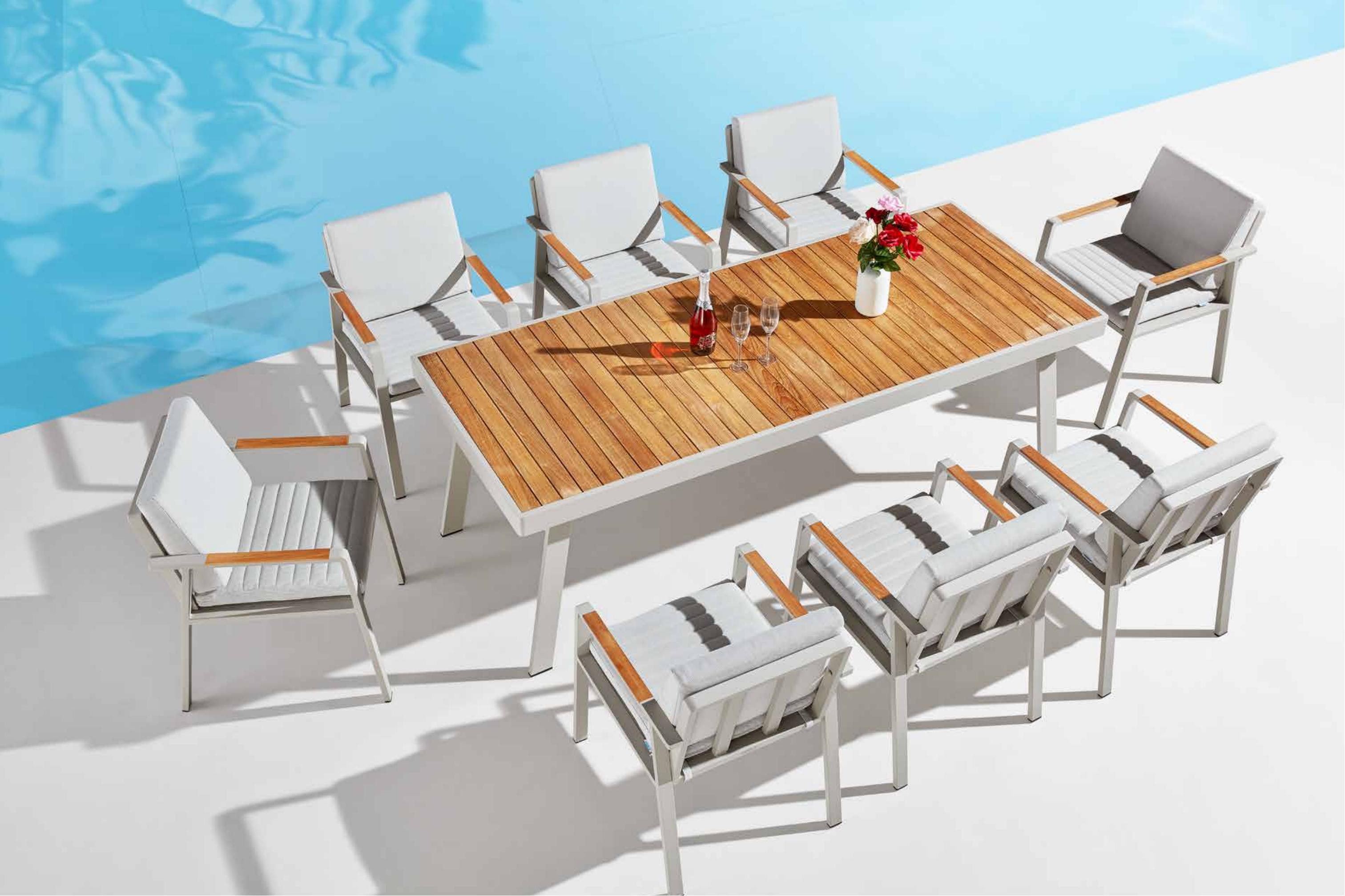 诺菲户外休闲系列由大件套沙发、组合沙发套、餐台系列、吧台系列、遮阳床、秋千等组成。它拥有一个完整的系列来满足各种生活需求。在扶手和桌子台面安装了天然柚木,用柔软轻盈的靠垫设计,诺菲展示了简约风,但从未失去它的舒适。有了 DIY的概念,消费者可以很容易地按说明书进行组装。 【诺菲系列】 “多元”---系列产品配套齐全,沙发、餐桌椅、躺床、高吧餐桌椅、秋千等,满足您的各种生活需求 “DIY”---诺菲全品类产品包装均为拆装,能够最大限度减少装柜空间,同时消费者可参照安装说明书轻松组装产品 “融合”---A级缅甸进口柚木+航空级合金框架+环保布料软包,三者完美融合,简约却不失高级质感