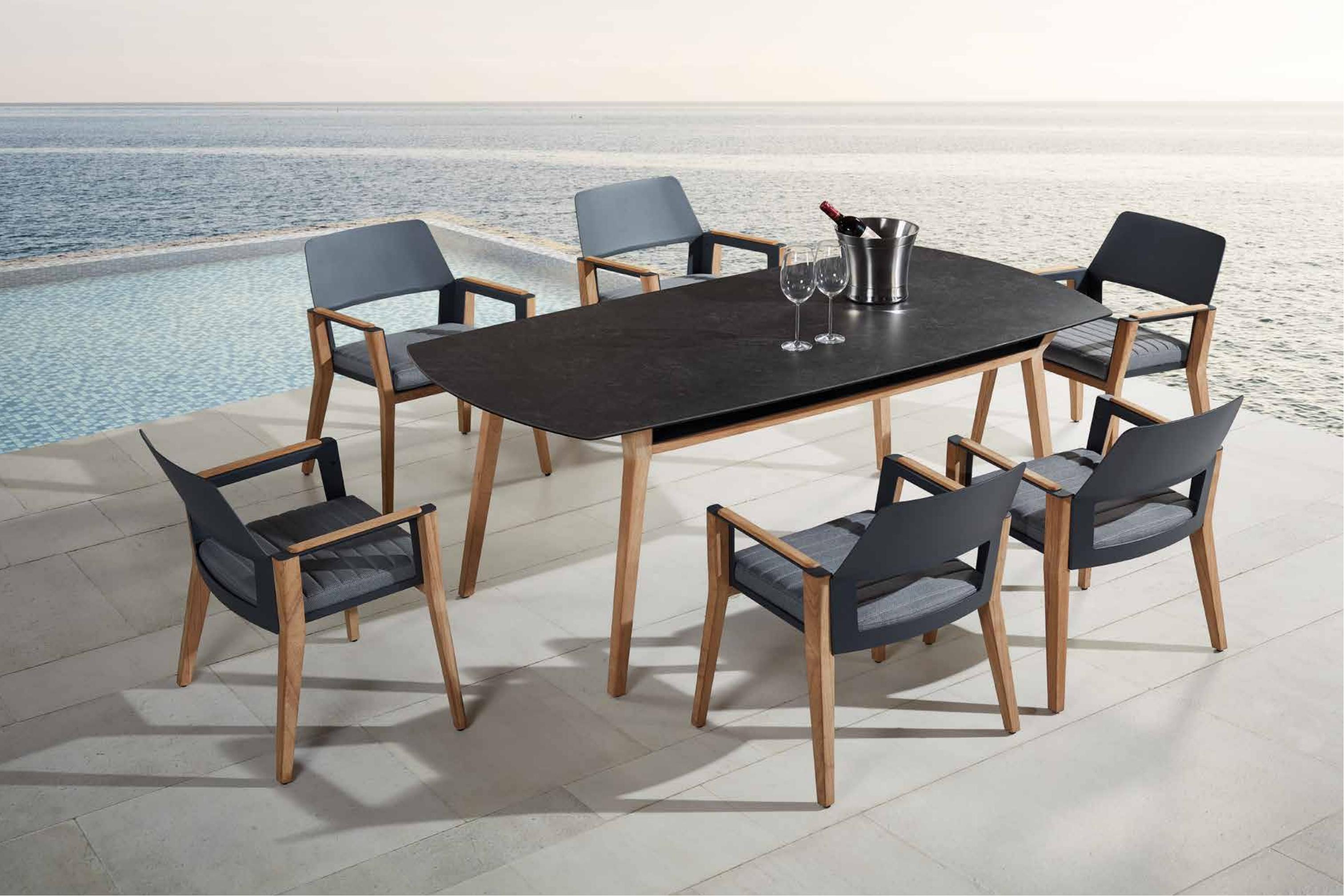 首席设计师——里奥拉斯与我们的团队共同开发了全新“希尔登”系列,作为一种永不过时的设计,适用于享受充满阳光的户外,也适用于舒适,精致的室内休闲。坚固的柚木脚赋予来自大自然的经典触感,同时,他还拥有着极具质感的铝制座椅和舒适的靠垫。 从颜色的搭配到纹理设计,都倾注了我们对“希尔登”的用心。“希尔登”所拥有的柚木和金属相结合的结构搭配,将完美融合于现代的高端私人住宅以及任何时尚的商业环境中 – 请享受里奥拉斯为悍高带来的全新新品“希尔登”。 “经久”---极具质感的实心金属板和A级缅甸进口柚木的巧妙搭配,经典的选材初衷 “精致”---一体式铝板,纯粹而不单调,坚固的柚木脚赋予来自大自然的经典触感,彰显低调的奢华 “便捷”---产品整体无需组装,拆箱即可使用;进口陶瓷玻璃耐脏且极易清洁